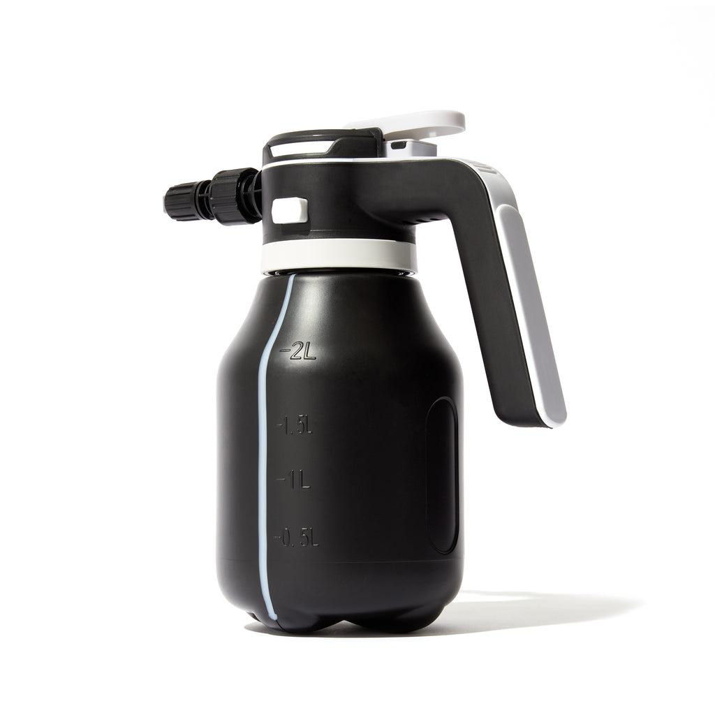 As the name suggests, the electric foamer runs on a battery and doesn't require manual air pressure pumping like the manual foamer.
