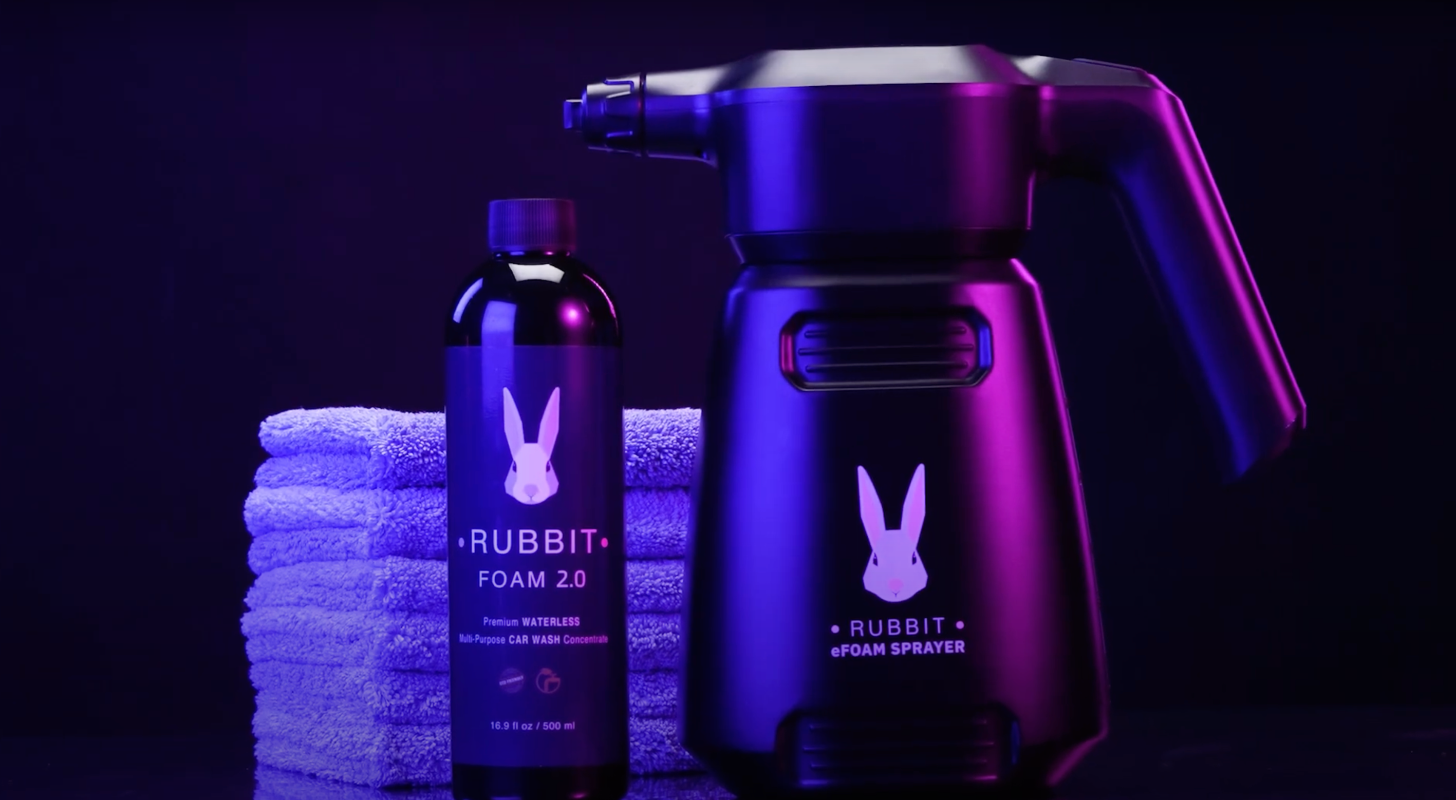 For every liter of water (34 oz), use 25 ml of Rubbit Foam (1 oz). Most family-sized cars will require 2 liters of water (68 oz) and 50 ml of foam (2 oz). Use the measuring cup provided in the box to ensure the correct ratio.